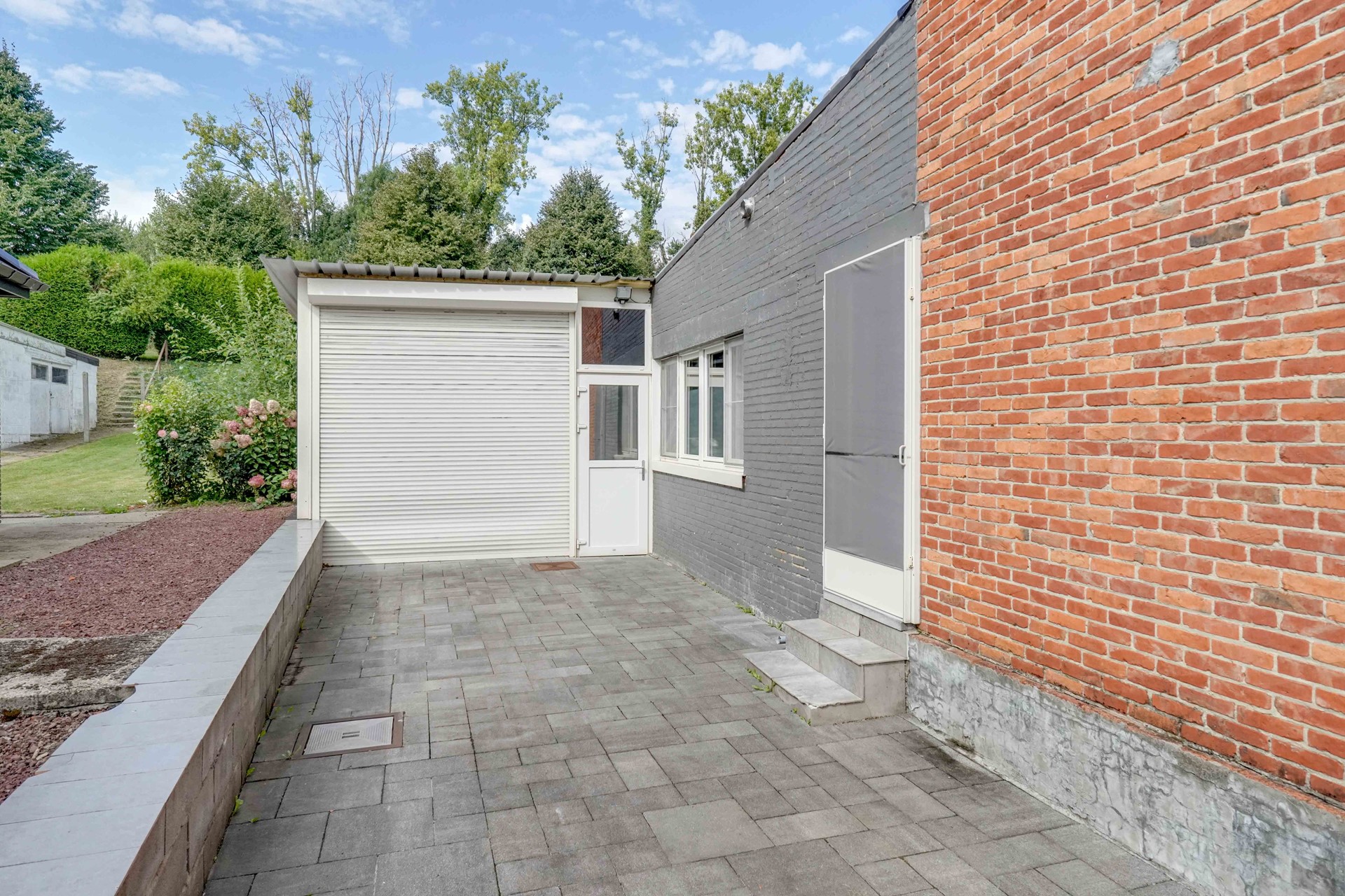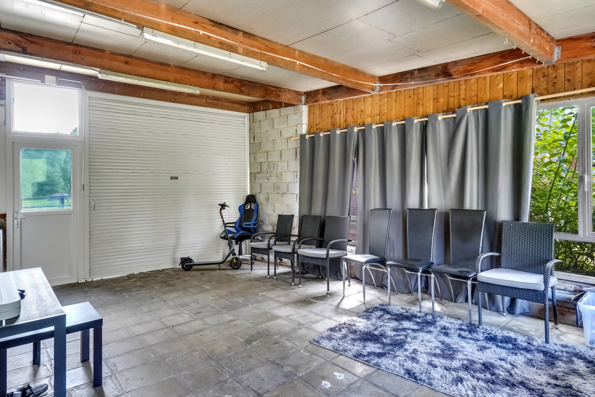 De woning beschikt over een praktische indeling met op het gelijkvloers de inkomhal, ruime woonkamer, inbouwkeuken, badkamer en een inpandige garage voor meerdere wagens.