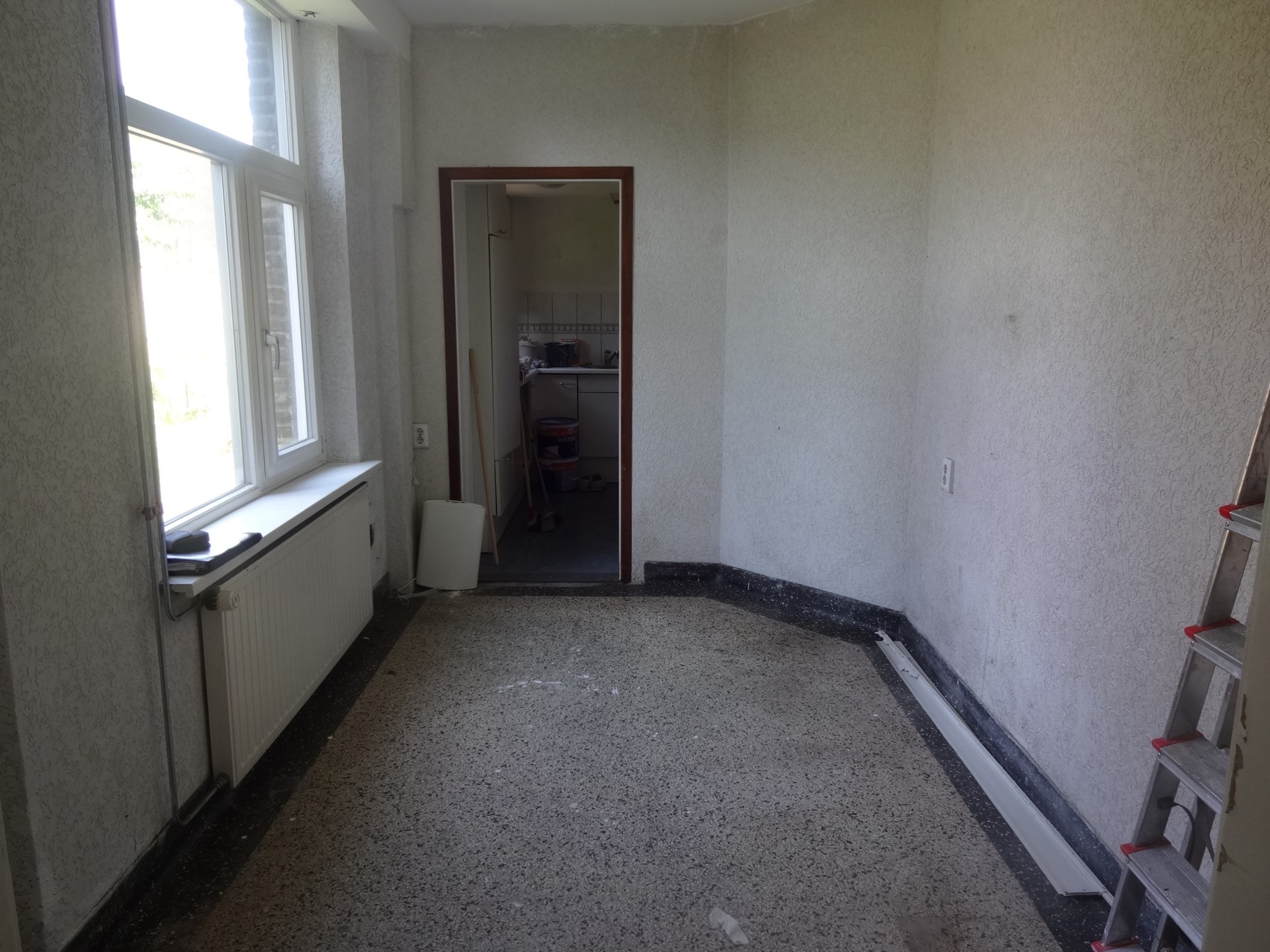 De entree en hal 8m² worden gedeeld met de bewoners boven.