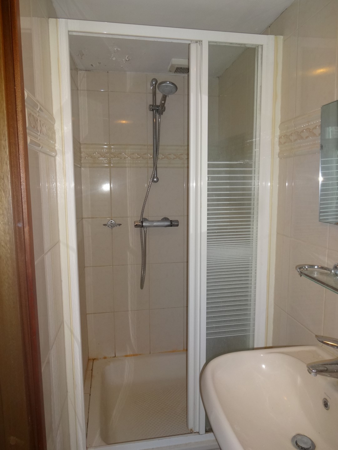 De badkamer 5m² is gelegen naast de keuken.