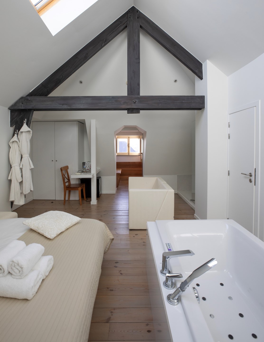 De centrale nachthal geeft toegang tot 4 luxueuze kamers van respectievelijk 19m2, 24m2, 33m2 en een suite van 58m2