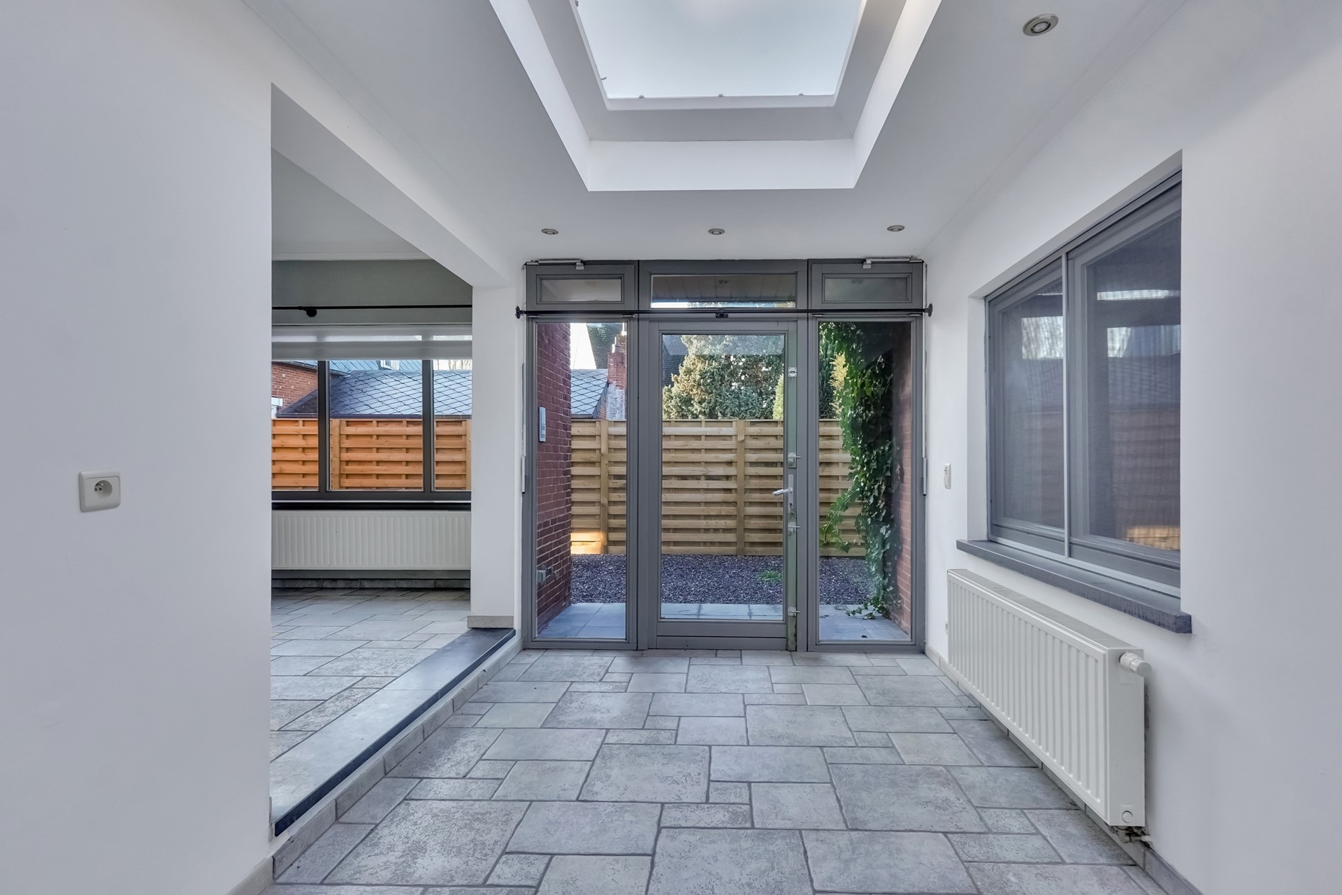 Via de praktische toegangspoort bereikt u de achterliggende tuin, een aangename buitenruimte om in alle rust te genieten.