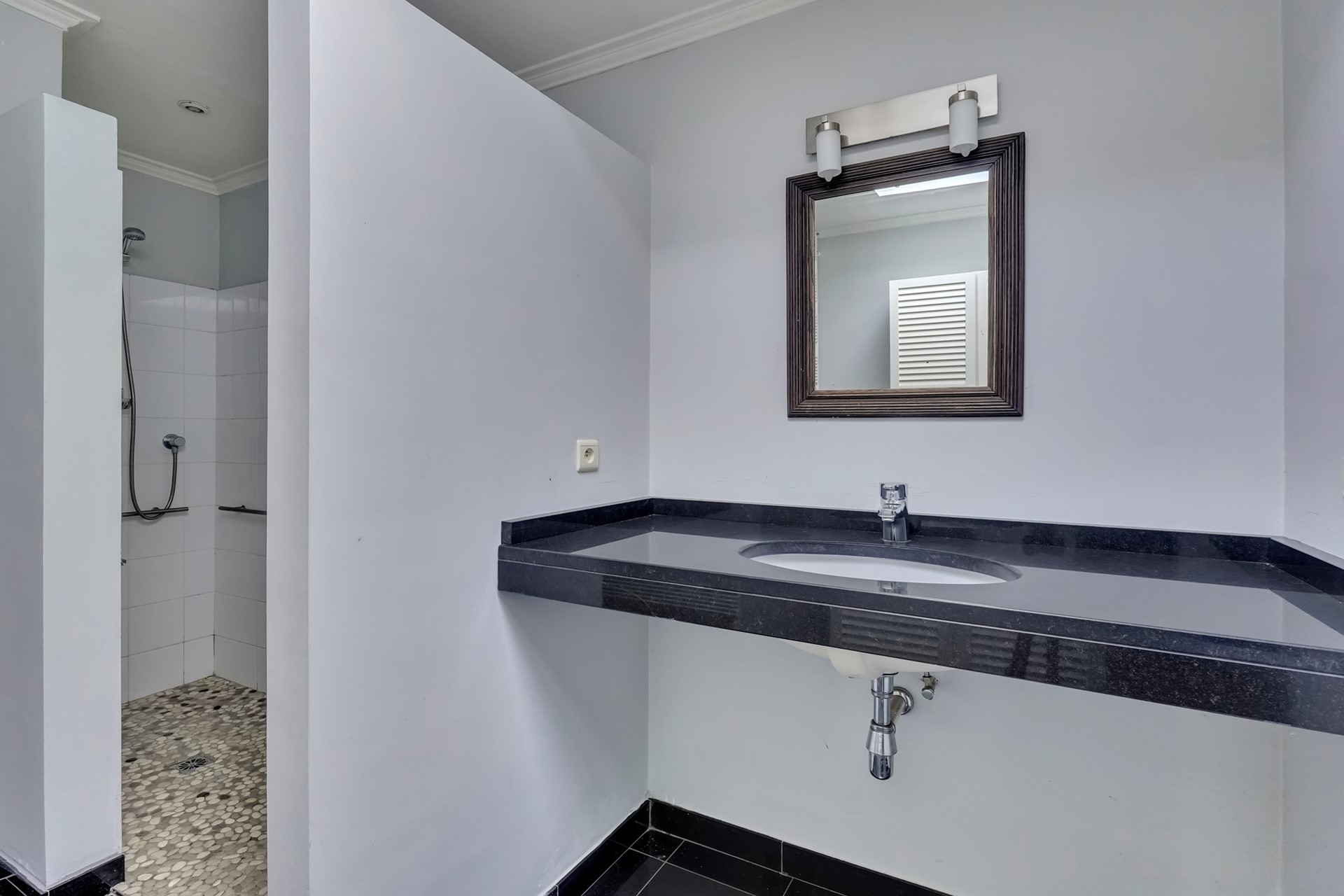 - Badkamer met inloopdouche en lavabo